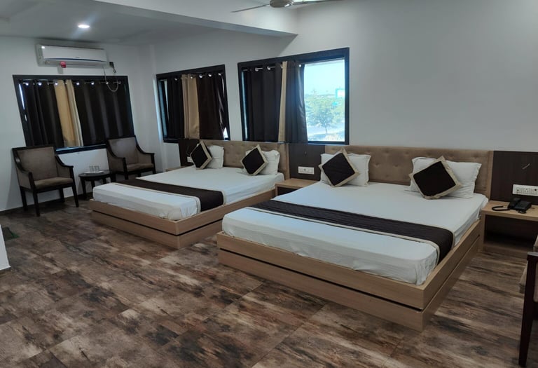 Our AC rooms are designed for guests who want a comfortable and relaxing stay. These rooms are fully air-conditioned and equipped with modern amenities.